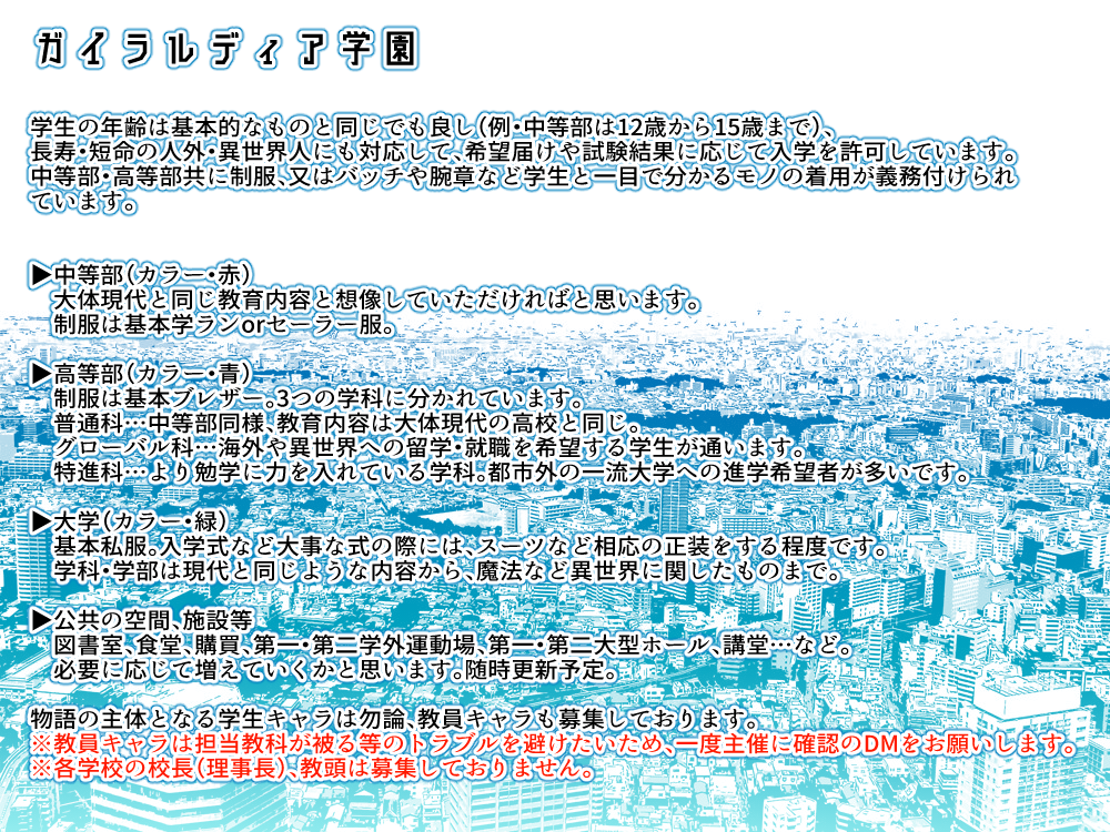 〇中等部・高等部共に、生徒会や各委員会への役員になりたい方は主催TwitterアカウントへDMをお願いします。